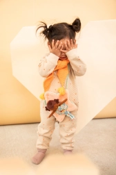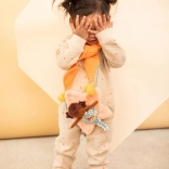 Hergestellt aus recyceltem Polyester und Baumwolle ist sie umweltfreundlich und zugleich widerstandsfähig im Alltag. Die abwischbare Oberfläche erleichtert die Pflege, und die praktischen Maße passen perfekt in kleine Kinderhände.