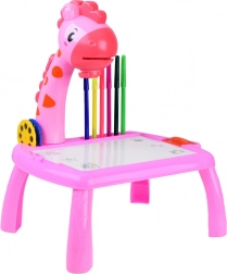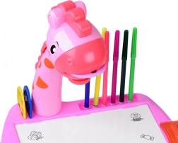 Der Giraffen-Projektor-Zeichentisch ist ideal für kleine Nachwuchskünstler. Der Projektor wirft Bilder auf die Zeichenfläche, die das Kind leicht abpausen und ausmalen kann. Dank der kompakten Maße lässt sich die Platte auf dem Tisch verwenden oder mit den beiliegenden Beinchen als kleiner Kinder-Zeichentisch aufstellen.