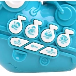 Die Tasten PLAY und OKON bieten zusammen 20 Stücke. Einfach zuhören oder im Takt auf den Tasten mitspielen – mit Blasen oder auch ohne.