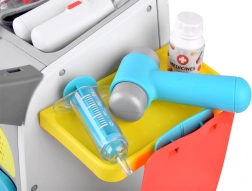 Das Set fördert Feinmotorik, Fantasie und soziale Fähigkeiten beim Spielen mit Freunden. Die fahrbare Konstruktion erlaubt es, die „Ambulanz“ durchs Zimmer zu bewegen und alle Arztutensilien stets zur Hand zu haben.