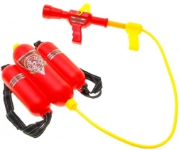 Drei Tanks am Rücken, Schlauch und Spritzpistole – einfach mit Wasser füllen und pumpen. Ideal für Spaß im Freien und sicheres „Löschen“ von Bränden.
