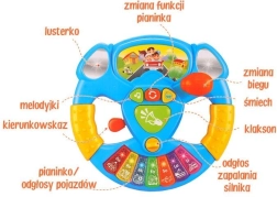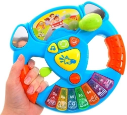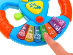 Das interaktive Musiklenkrad ist der ideale Begleiter für unterwegs und zum Spielen zu Hause. Kinder fühlen sich wie echte Fahrer dank authentischer Effekte und einfacher Bedienung. Die bunten Do–Re–Mi-Tasten und weitere Töne starten Melodien und Geräusche von Verkehrsmitteln, die Gehör, Koordination und Rhythmus fördern.