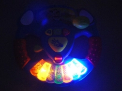 Noten-Taste (Melodien), grüne Taste (Wechsel der Melodien), orangefarbene Taste (Kinderlachen)