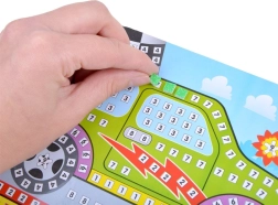 Kinder kleben die Schaumstoffteile auf nummerierte Felder und erstellen mühelos ein schönes Automosaik. Ideal für erste kreative Projekte.
