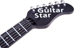 Das Set besteht ausschließlich aus Kunststoff mit Metall-Saiten. Das rockige, bunte Design passt perfekt zum kraftvollen Sound, der kleine Gitarristen begeistert.