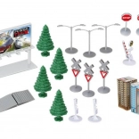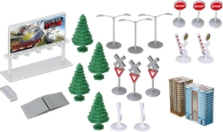 Wir bieten ein sicheres Produkt, das gemäß den europäischen CE-Normen zertifiziert ist und für Kinder ab 4 Jahren geeignet ist. Mit den Abmessungen der einzelnen Teile – die Lokomotive misst 13 x 3 x 4 cm, die Waggons 11,5 x 3 x 3,5 cm, die Bäume sind 7,5 cm hoch und die durchschnittlichen Abmessungen der Gebäude betragen 5 x 11 x 5 cm – sind vielfältige Aufbau- und Spielmöglichkeiten garantiert.