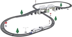 Zum Set gehören eine Lokomotive und Schienen mit einer Gesamtlänge von 366 cm, die das Erstellen verschiedener Strecken nach Belieben ermöglichen.
