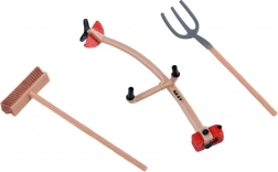 Die Bauernfigur mit Schubkarre, Mistgabel, Harke und Besen bringt Dynamik ins Spiel und lehrt Kinder, sich um Tiere und Ordnung zu kümmern.