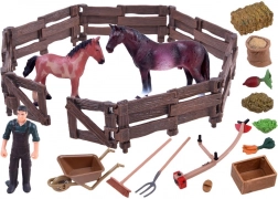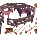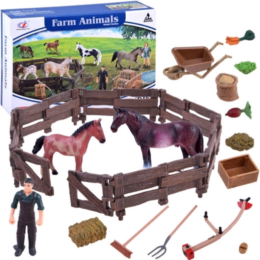 Dieses komplette Set bietet Kindern ein authentisches Bauernhoferlebnis. Enthalten sind ein Pferd und ein Fohlen, eine Bauernfigur, ein Gehege sowie nützliche Werkzeuge und Futter. Realistische Farben und sorgfältige Details steigern den Spielspaß und helfen Kindern, die täglichen Tätigkeiten auf dem Hof zu verstehen.