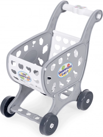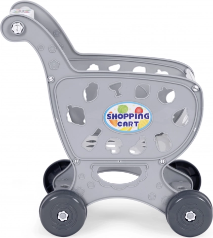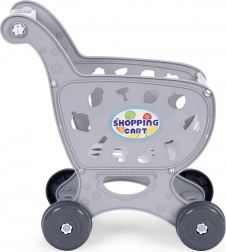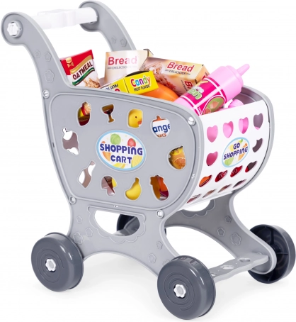 Grauer Kinder-Einkaufswagen für das Spiel im Supermarkt oder in der Küche + 18 Zubehörteile