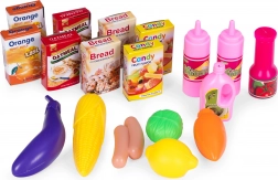 Das Set enthält einen authentisch aussehenden Einkaufswagen mit verschiedenen Lebensmitteln, der motorische und organisatorische Fähigkeiten fördert. Kleinkinder können sich auf viele Nachbildungen echter Produkte freuen, von Gemüse bis Süßigkeiten, wodurch das Einkaufenlernen zu einem faszinierenden Erlebnis wird.