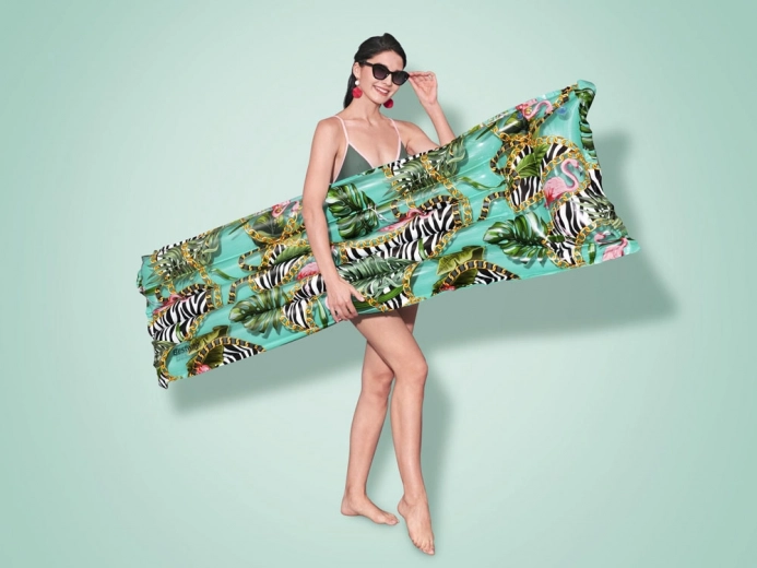 Diese stilvolle aufblasbare Matratze mit tropischem Druck ist ideal zum Relaxen in Ihrem Pool oder im Urlaub. Dank robustem PVC-Material und durchdachter Konstruktion mit mehreren Luftkammern bietet sie hervorragenden Auftrieb, Komfort und eine lange Lebensdauer.