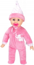 Angenehm weiche Ausführung, abnehmbare rosa Kleidung und ein Schnuller fördern die Feinmotorik und das Pflegerollenspiel.