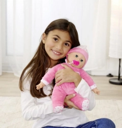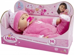 Die niedliche interaktive Puppe Laura ist der ideale Begleiter für Rollenspiele rund um die Familie. Sie hat einen weichen Körper, realistische Atembewegungen, 14 Baby-Geräusche und ein Schlaflied, schließt die Augen beim Schlafen und reagiert auf die Try Me-Funktion. Inklusive rosa Schnuller und abnehmbarer Kleidung.