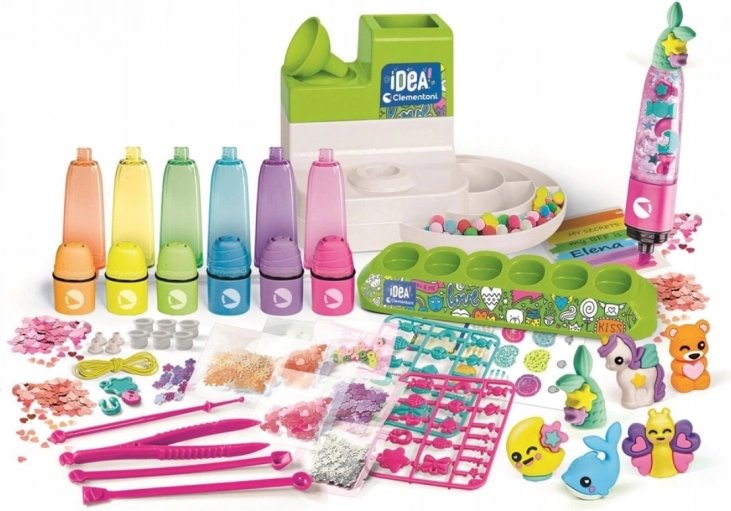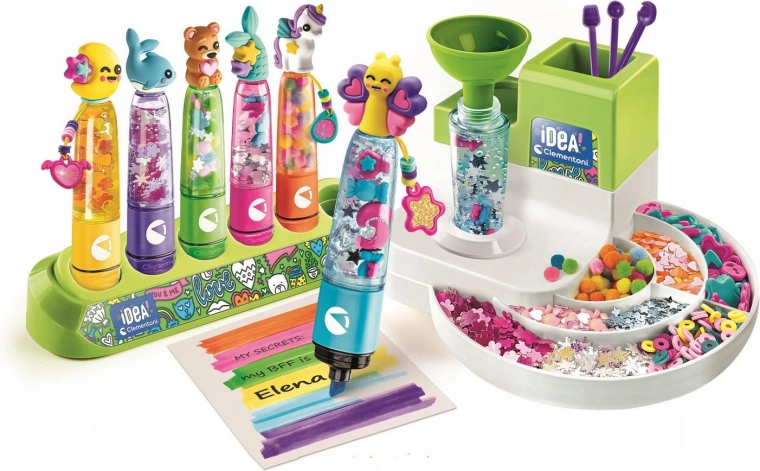 Das Kunst-Set Clementoni IDEA! ermöglicht es Ihnen, eigene wunderschöne Textmarker mit vielen Accessoires und Dekorationen herzustellen.