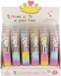 Dieser verspielte 6-Farben-Kugelschreiber mit plüschiger Verzierung und Einhorn-Figur macht aus jeder Notiz ein kleines, buntes Erlebnis. Einfach die gewünschte Farbe drücken und sofort losschreiben – ganz ohne langwierigen Minenwechsel.