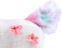 Das rosafarbene Horn, die regenbogenfarbene Mähne und Blümchen an der Seite verleihen dem Spielzeug einen magischen Look und fördern die Fantasie.