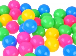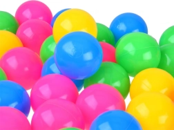 Dieses Set enthält 100 bunte Kugeln, die perfekt für Kinderspielbereiche sind. Die Kugeln haben einen Durchmesser von 6,5 cm und sind in vier leuchtenden Farben erhältlich: rosa, gelb, grün und blau, was ihre Attraktivität für Kinder garantiert und den Spaß fördert.