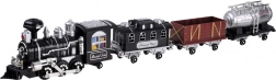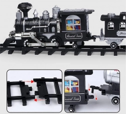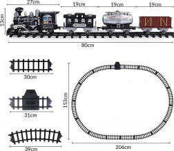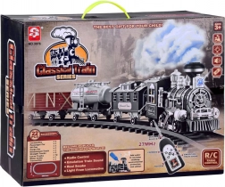 Dieses außergewöhnliche Zugset ist mit einer Fernbedienung ausgestattet und bietet effektvolle Fahrten vorwärts und rückwärts. Die Lokomotive leuchtet und stößt Rauch aus dem Schornstein, was der Fahrt Authentizität verleiht. Soundeffekte simulieren realistische Zuggeräusche wie Pfeifen, das Klappern der Räder auf den Schienen und das Klingeln. Das Modell ist ein ideales Geschenk für alle Fans von Zugsets.