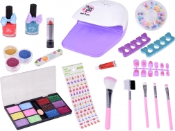 Dieser bezaubernde Koffer ist gefüllt mit hochwertigem Kosmetikzubehör zur Kreation schöner Nägel und Make-up. Der Koffer mit eingebautem Spiegel und Halterungen für Kosmetik ist ideal für jede kleine Stylistin. Dank des praktischen Griffs können Sie den Koffer leicht mitnehmen, wohin Sie auch gehen. Das Set enthält: