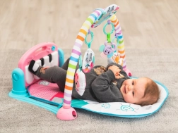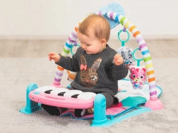 - Motorische Entwicklung: Treten gegen die Tasten, Greifen und Schütteln von Spielzeugen stärkt die Koordination von Händen und Füßen.