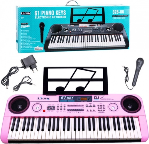 Im Lieferumfang enthalten sind Mikrofon, Netzadapter, 3,5-mm-Kabel und Notenhalter – alles, was Sie für sofortiges Spielen und Singen benötigen.