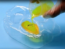 Präsentieren Sie Ihr fertiges Werk, eigenen Bernstein mit eingeschlossenen Insekten und dekorativen Motiven.