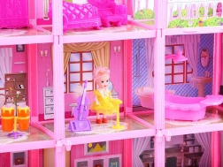 Das große pinke Puppenhaus ist mit Liebe zum Detail und hoher Verarbeitungsqualität konzipiert, was Langlebigkeit und Sicherheit beim Spielen garantiert. Sein rosa und attraktives Design zieht vor allem kleine Mädchen an, die darin ihre eigene Welt voller Abenteuer erschaffen können.
