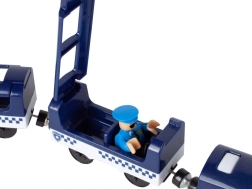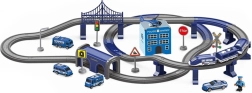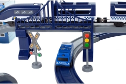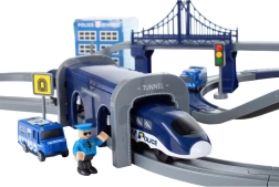 Das reichhaltig ausgestattete Set, bestehend aus 92 Elementen, ermöglicht es Ihnen, eine Zugstrecke mit Brücken, Viadukten und Tunneln zu bauen. Entlang der Strecke können Verkehrszeichen sowie eine Polizeistation mit Hubschrauberlandeplatz platziert werden.