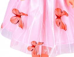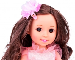 Die elegante 36 cm große Puppe begeistert kleine Prinzessinnen auf Partys wie auch bei Teestunden. Sie hat lange, kämmbare dunkle Haare mit Blumen-Haarspange, trägt ein rosa Kleid mit Tüll und Schmetterlingen und an den Füßen abnehmbare Ballerinas mit Schleifchen. Sie fördert die Entwicklung von Fantasie, Kreativität und sozialen Fähigkeiten und ist ideal für Kinder ab 3 Jahren.