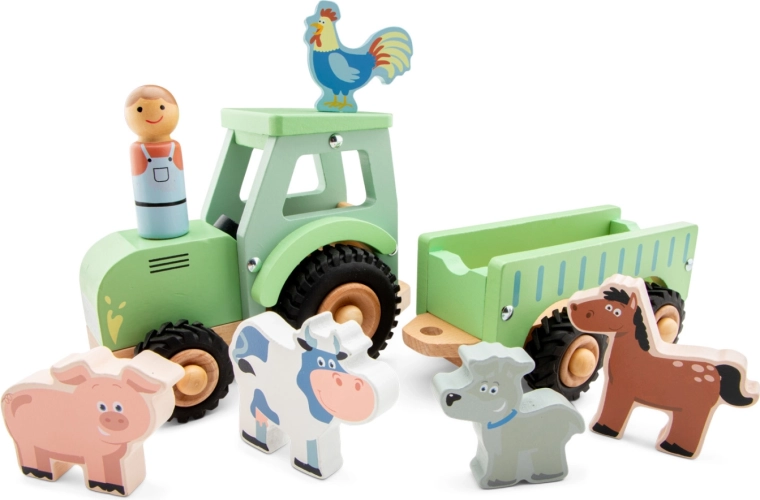 Dieser hochwertige Holztraktor mit Anhänger und Tierset bringt Kindern authentische Landerlebnisse. Dank der funktionierenden Räder und des abkoppelbaren Anhängers können kleine Bauern Tiere leicht transportieren und eigene Geschichten aus dem Bauernhofleben erschaffen.