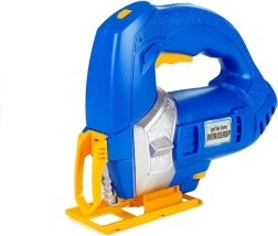 Die Kinder-Stichsäge kopiert originalgetreu die Form eines echten Werkzeugs, fördert die Fantasie und Lernen durch Spiel. Betrieb mit 2× AA (Batterien nicht enthalten).