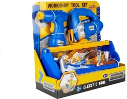 Diese multifunktionale Kinderwerkstatt im Koffer bringt alles mit, was kleine Tüftler brauchen: Schraubendreher, Säge, Maßstab, Zange, Cuttermesser, ein „Holz“-Teil und vor allem Kinder-Bohrmaschine/Schrauber und Stichsäge. Die Werkzeuge bestehen aus hochwertigem, leichtem Kunststoff in neutralen Farben und erinnern in ihrer Optik stark an echtes Werkzeug – ideal für Rollenspiele und erste Bastelprojekte.