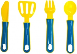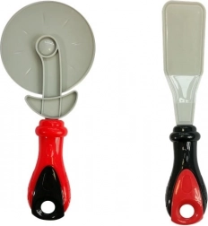 Dazu gehören ein Kunststoff-Pizzaschneider und ein Wender mit leichtem Griff – ideal für sicheres und spaßiges Spielen ohne scharfe Kanten.