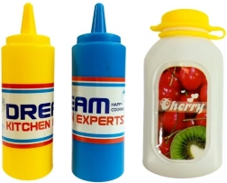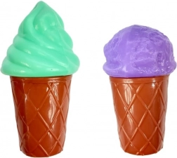 Zwei bunte Eissorten und drei Fläschchen mit „Soßen“ fördern die Fantasie der Kinder beim Würzen und Servieren.
