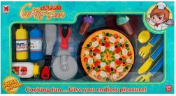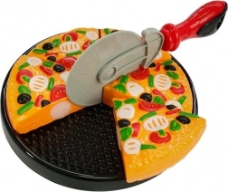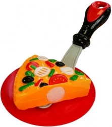 • Realistisches Kochspiel: Pizza mit Klettverschluss, Schneiderad, Heber, Besteck und Teller