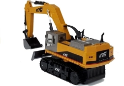Im Lieferumfang enthalten ist eine 2,4G-Fernsteuerung für Vorwärts-/Rückwärtsfahrt, Rechts/Links, Steuerung des Auslegers und Drehen der Kabine. Das Spielzeug besteht aus geprüftem, hochwertigem Kunststoff, erfüllt die Normen CE und EN 71 und wird in einer Geschenkbox mit Sichtfenster geliefert. Für den Betrieb einfach 2× AA-Batterien in die Fernsteuerung einsetzen (nicht enthalten) und die mitgelieferten Akkus im Bagger anschließen.