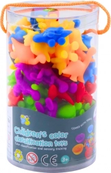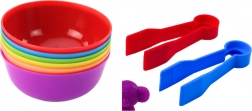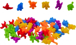 Das Set enthält eine bunte Sammlung von Dinosauriern und sechs Becher in leuchtenden Farben, in die Kinder ihre Dinosaurier platzieren können. Für das Spiel gehört auch eine spezielle Zange, die den Kindern hilft, Dinosaurier zu bewegen und nach Farben zu sortieren. Dies stärkt die motorischen Fähigkeiten und Koordination.