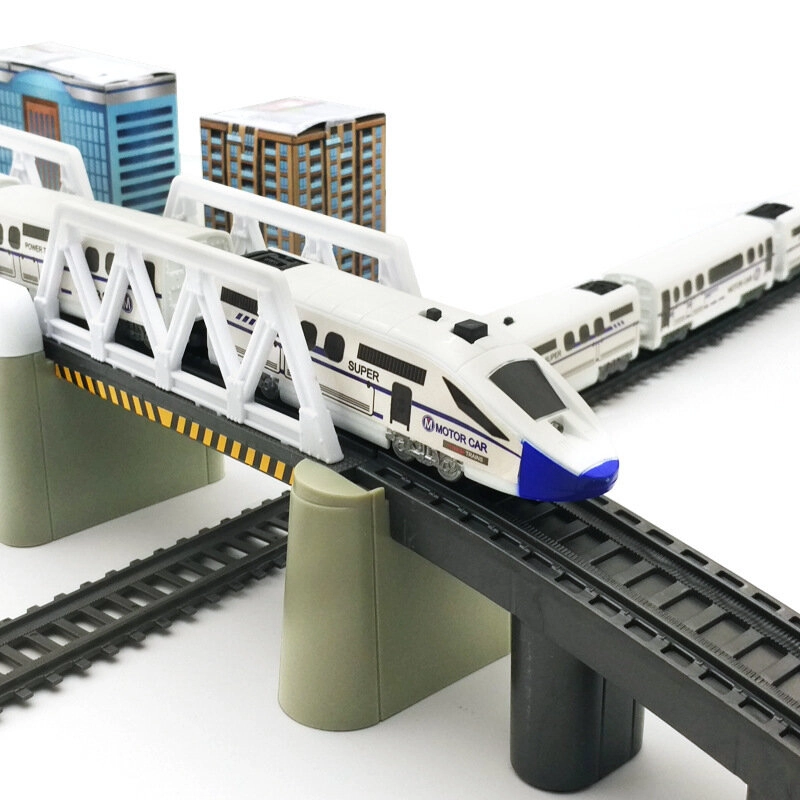 Das Set umfasst verschiedene Schienenteile, die nach Belieben kombiniert und angepasst werden können, um komplexe und vielfältige Streckenlayouts zu erstellen. Ein besonderes Highlight ist die Möglichkeit, eine funktionierende Klappbrücke zu bauen, die dem Spiel einen realistischen Touch verleiht. Diese Brücke kann per Knopfdruck angehoben werden, wodurch Züge passieren können, und verleiht dem gesamten Set ein interaktives Element. Dank dieser Funktion können Kinder selbst erleben, wie eine Klappbrücke funktioniert – lehrreich und unterhaltsam zugleich.