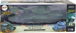 Ein Kampftank, der Sie in die Atmosphäre realistischer Schlachten versetzt. Ausgestattet mit einem drehbaren Turm und Infrarotsystem für realistische Spielerlebnisse. Bei einem erfolgreichen Treffer des gegnerischen Fahrzeugs gibt der Tank realistische Soundeffekte von sich und bestätigt den Erfolg durch das Ausschalten einer der Kontrollleuchten am gegnerischen Tank. Nach drei Treffern endet die Schlacht und Sie können von vorne beginnen.