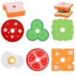 Dieses bunte Holzset ermöglicht Kindern, eigene „Sandwiches“ nach Fantasie oder anhand der beiliegenden Bestellkarten zu bauen. Dank einfacher visueller Anleitungen können Kinder Rezepte leicht nachahmen, lernen Farben und Formen zu unterscheiden und üben Schritt-für-Schritt-Planung.