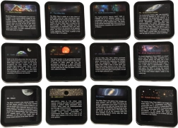 Umfangreiches Set mit Weltraummotiven: Erde, Sonnensystem, Milchstraße, Mond und mehr. Jede Scheibe zeigt ein Bild und eine kurze Beschreibung auf Englisch – ideal für neugierige Kinder und Erwachsene.