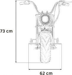 Für noch mehr Erlebnis ist das Motorrad mit einem vorderen LED-Licht und einer effektvollen Beleuchtung des „Motors“ ausgestattet. Kinder werden das Audio-Panel mit MP3 und USB, die vorgespeicherten Melodien sowie die Imitation des Motorsounds lieben. Die Bedienung ist intuitiv – stufenlose Geschwindigkeitsregelung am Griff und Taster-Start erleichtern die tägliche Nutzung.