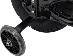 Zusätzliche Stützräder halten die Stabilität beim Fahrenlernen. Die robuste Konstruktion und breiten Reifen geben Sicherheit auf jedem Meter.