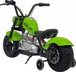 Das elektrische Motorrad Chopper Warrior in Grün ist ideal für kleine Fahrer, die echten Fahrspaß erleben möchten. Dank des leistungsstarken 350-W-Brushless-Motors und des 36-V-Akkusystems bietet es sanfte Beschleunigung und lange Ausdauer. Breite, aufpumpbare 32×10 cm Reifen zusammen mit Federung und seitlichen Stützrädern sorgen für Stabilität und Komfort auf verschiedensten Untergründen.