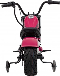 Das Kinder-Motorrad Chopper Warrior in Pink kombiniert Sicherheitsmerkmale mit einem authentischen Design wie bei Motorrädern für Erwachsene. Dank der hochwertigen Konstruktion und stabilen Stützräder ist das Modell ideal für junge Fahrer, die ihre ersten Fahrten auf einem Motorrad ausprobieren möchten. Dieses Motorrad bietet ein realistisches Fahrerlebnis und fördert die Entwicklung motorischer Fähigkeiten.