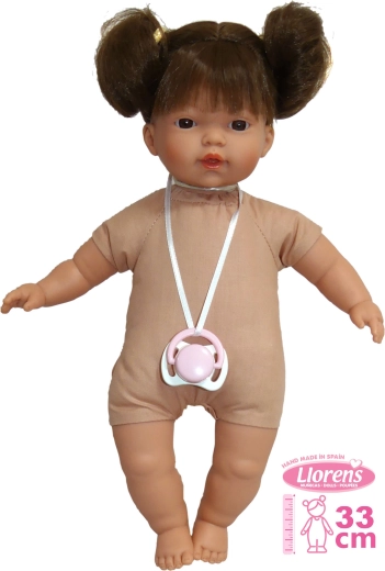 Funktionalität: Nach dem Herausziehen des Schnullers aus dem Mund sagt die Puppe "Mama", "Papa" und erzeugt den realistischen Klang eines weinenden Babys. Diese Geräusche können mit einem magnetischen Schnuller beruhigt werden. Das Modell enthält keine Kleidung, es wird empfohlen, originale Llorens-Kleidung für die Größe 33 cm zuzukaufen.