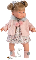 Die Puppe Llorens Alexandra wird mit Liebe zum Detail gefertigt, kombiniert hochwertiges, weiches Vinyl am Kopf und an den Gliedmaßen mit einem weichen Stoffkörper für komfortables Spielen. Nach Entfernen des Schnullers macht sie realistische Geräusche, wie „Mama“ und „Papa“, sowie das Weinen eines Babys, das mit dem magnetischen Schnuller beruhigt werden kann.