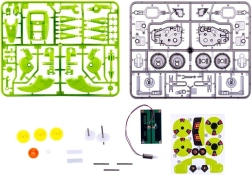 Enthaltene Komponenten: Kunststoffteile für den Zusammenbau des Roboters, Solarpanel, Motor, Kunststoffaugen, Aufkleber und bebilderte Anleitung.