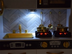 Geräusch- und Lichteffekte an Mikrowelle, Kochplatten und weiterer Ausstattung bieten ein authentisches Kocherlebnis.